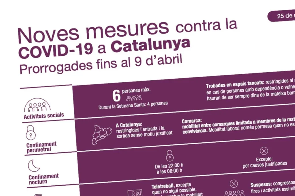 Mesures per a la contenció de la COVID-19 aplicables a partir del 29 de març a Catalunya