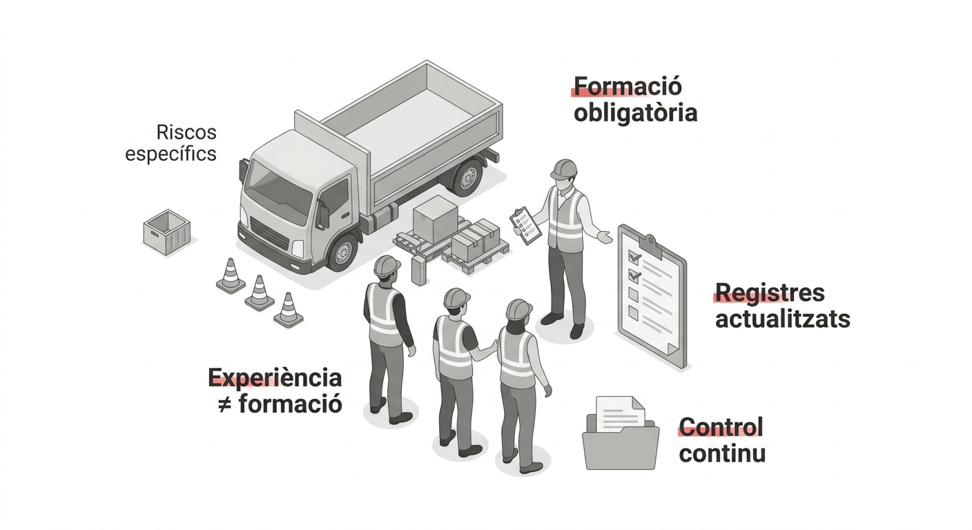 La manca de formació és, probablement, l’error més estructural en la gestió de la prevenció de riscos laborals a les empreses de serveis. La normativa és clara: l’empresa ha de garantir que cada treballador rep una formació teòrica i pràctica, adequada al seu lloc de treball i als riscos específics de l’activitat que desenvolupa. No és una opció ni un tràmit administratiu; és una obligació legal directa de l’empresari.