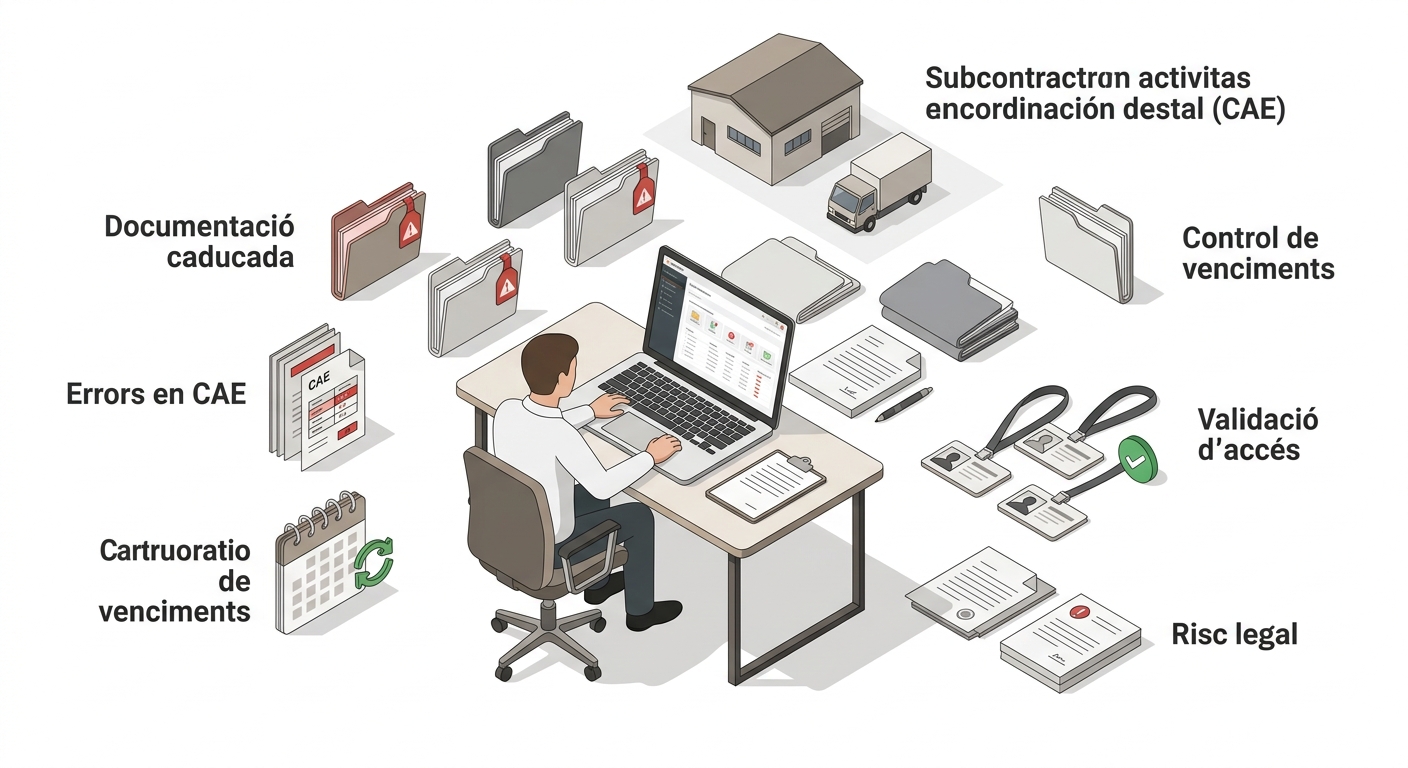 Una de les principals dificultats és la complexitat operativa. En entorns amb múltiples proveïdors, subcontractes i treballadors externs —com passa habitualment en la Coordinació d’Activitats Empresarials (CAE)— la gestió documental esdevé crítica. Formacions caducades, avaluacions de riscos no actualitzades o assegurances sense verificar són omissions aparentment menors que, en una inspecció, poden traduir-se en responsabilitats directes per a l’empresa titular.