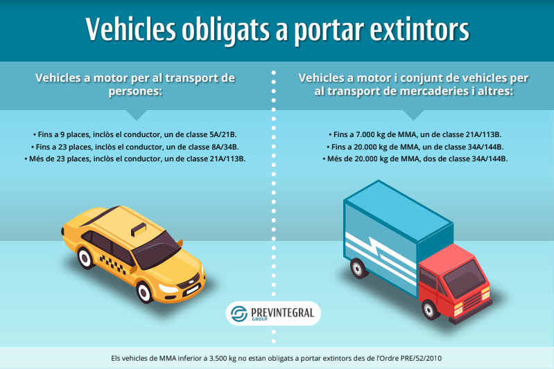 Els vehicles de MMA inferior a 3.500 kg no estan obligats a portar extintors des de l’Ordre PRE/52/2010.